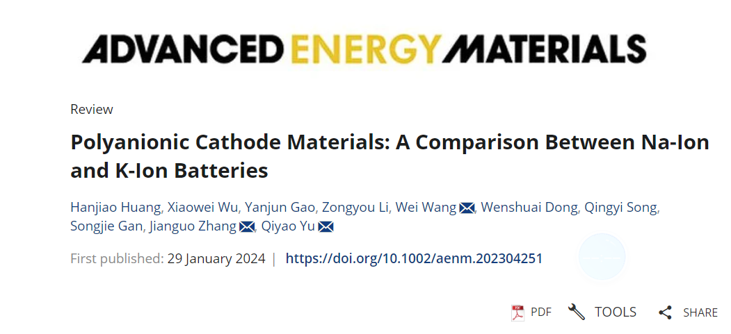 近日,BETWAY必威必威西汉姆联张建国教授团队在国际顶级期刊《Advanced Energy Materials》(影响因子27.800)发表题为《Polyanionic Cathode Materials: A Comparison between Na-ion and K-ion Batteries》的综述(DOI: 10.1002/aenm.202304251),文章综述了聚阴离子正极材料在钠/钾离子电池中的结构和性能上的差异。本单位通讯作者为张建国教授、于琪瑶副教授,第一作者为BETWAY必威必威西汉姆联2022级硕士生黄瀚蛟。