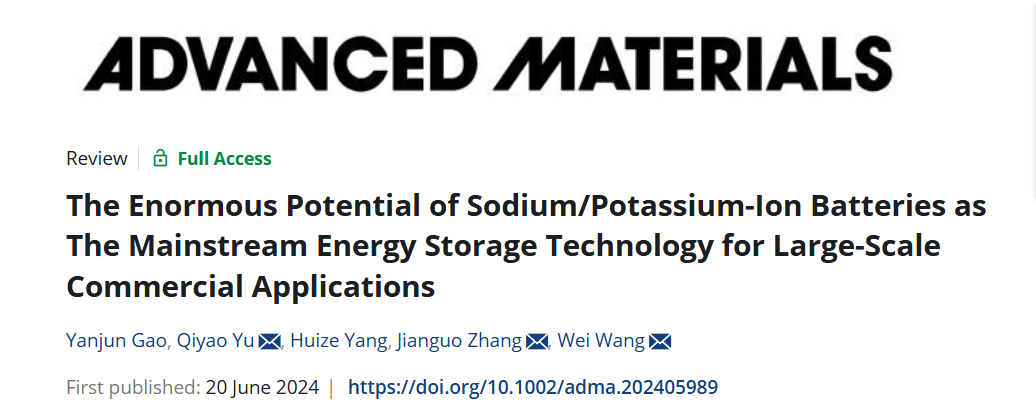 近日,BETWAY必威必威西汉姆联张建国教授团队在国际顶级期刊《Advanced Materials》(影响因子29.400)发表题为《The Enormous Potential of Sodium/Potassium-Ion Batteries as The Mainstream Energy Storage Technology for Large-Scale Commercial Applications》的综述(DOI: 10.1002/adma.202405989),文章综述了钠/钾离子电池和锂离子电池在成本效益上的差异。本单位通讯作者为张建国教授、于琪瑶副教授,第一作者为BETWAY必威必威西汉姆联2022级博士生高艳君。