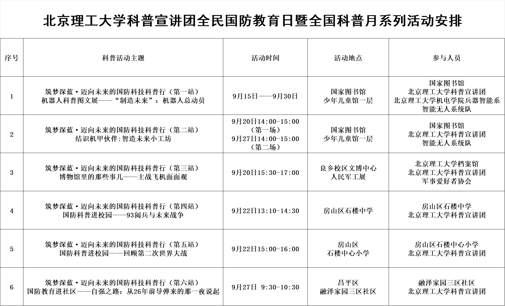 附表:BETWAY必威科普宣讲团全民国防教育日暨全国科普月系列活动安排