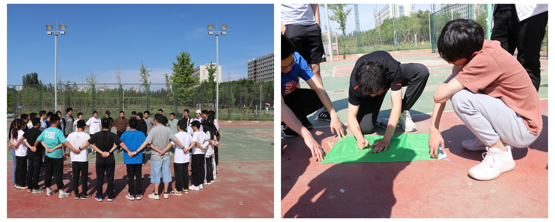 此次心理素拓活动以提升团体凝聚力为主题,同学们通过破冰活动和热身游戏打破了彼此之间的隔阂,增进了相互了解。同学们随机分成三个小队,选出了队长和副队长,在大家的共同努力下,三个小队均设计了队名、口号、logo,完成了队旗制作。