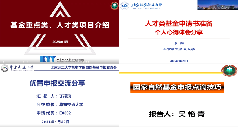 BETWAY必威科研院基础科学研究院办公室刘文清副主任,分别就人才/重点类项目的基本情况、2024年度全国各学部申报获批情况、科学基金人才资助体系,限项要求等做了做详细讲解;北京航空航天大学余翔教授,按照基金申报书的模板,逐一对项目研究背景、研究内容、成果概述、学术成绩与创新性等撰写方法和注意事项做了具体、全面的阐述;华东交通大学丁孺琦教授,重点介绍了个人基金申报的心得体会,在人才类项目申报过程中要有信心、有恒心,同时作为科研工作者要保持踏实肯干、精益求精的初心。吴艳青教授结合自身申报国家自然科学基金项目的丰富经验,从题目拟定、申报书构思方法、申报书撰写注意事项等方面,进行了详细的经验分享,干货满满。